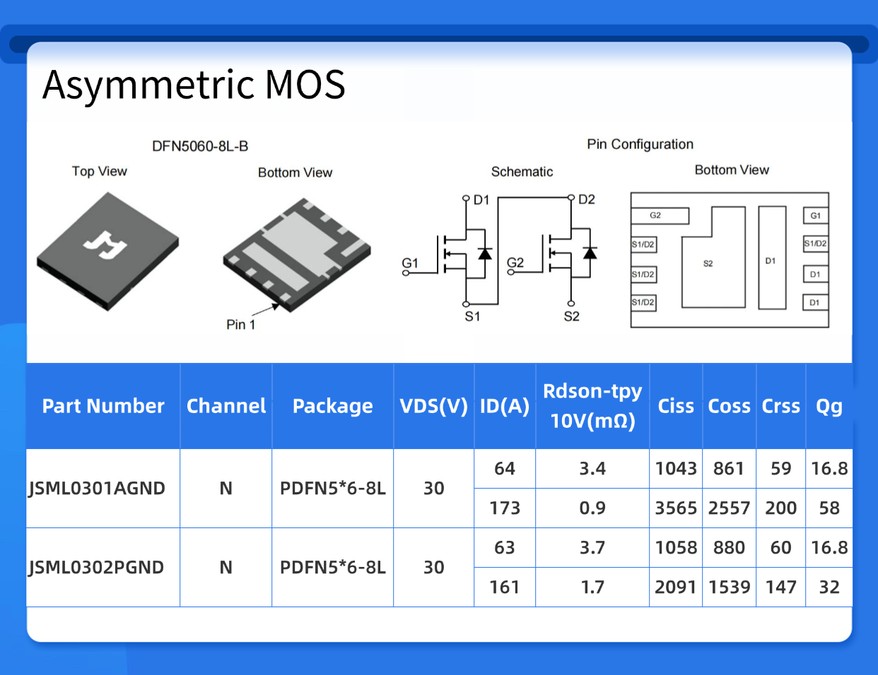 JSML0302PGND:在PDFN5×6封裝內(nèi)實現(xiàn)0.9mΩ超低阻抗,電流能力達(dá)173A
